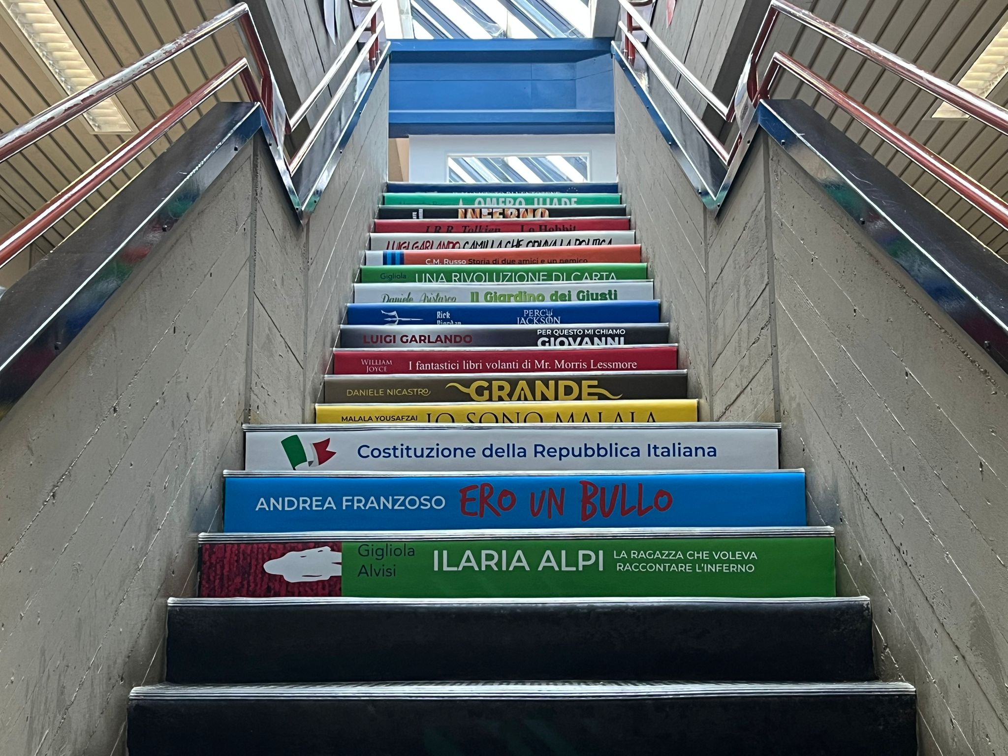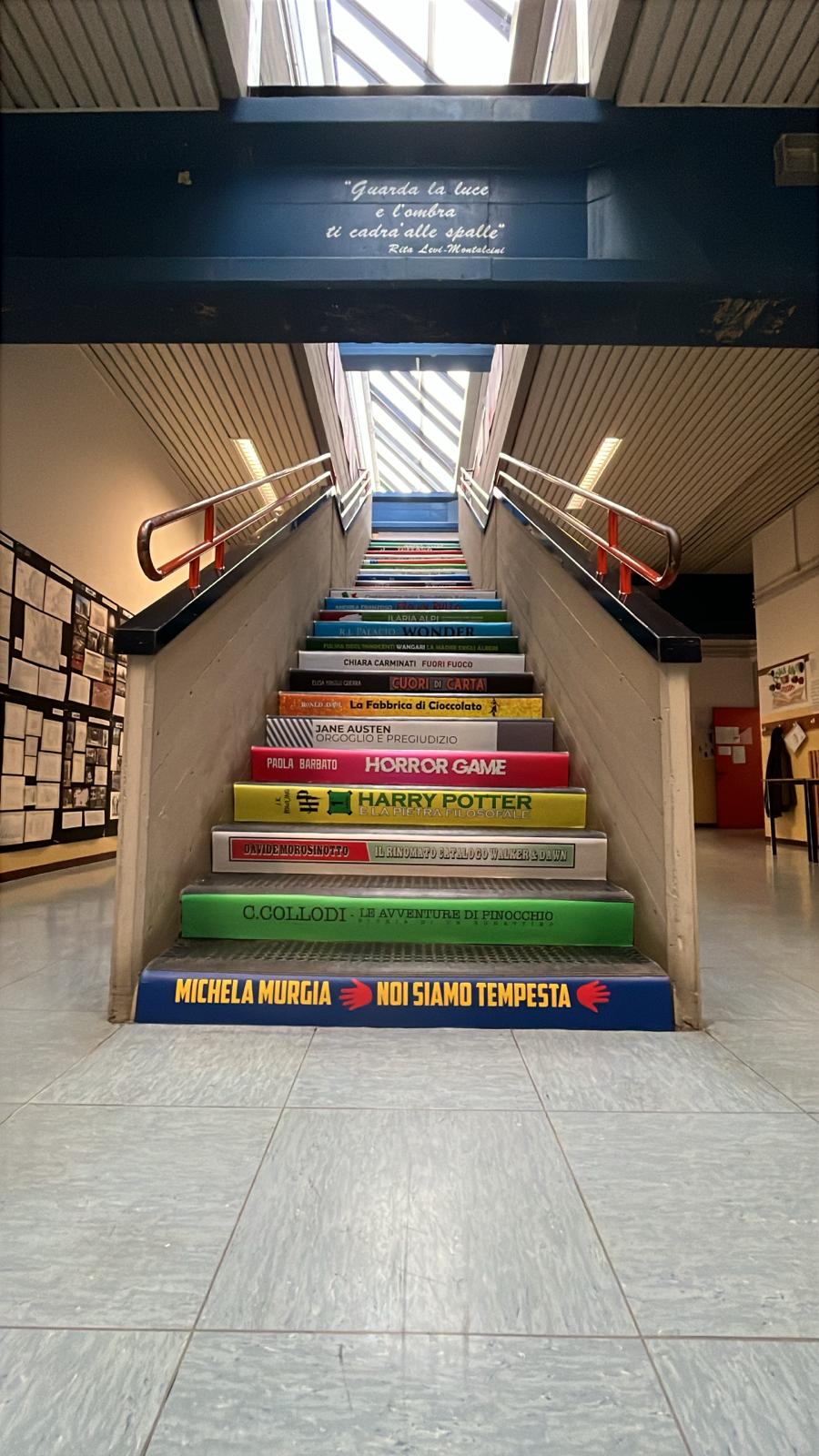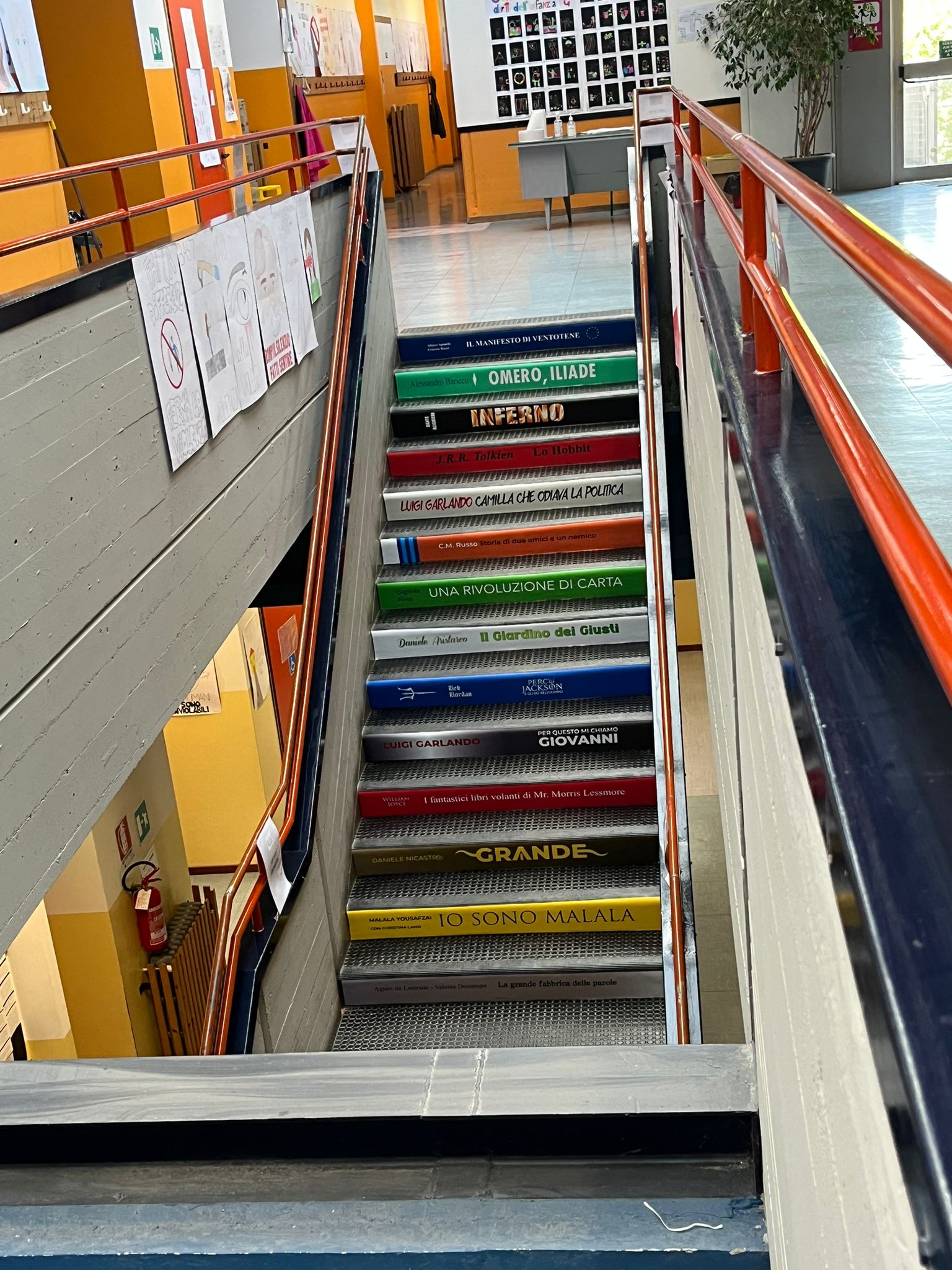 Lunedì mattina 27 aprile, studenti e docenti della Scuola Secondaria, entrando a scuola hanno trovato una bellissima novità: una scalinata di “libri”!